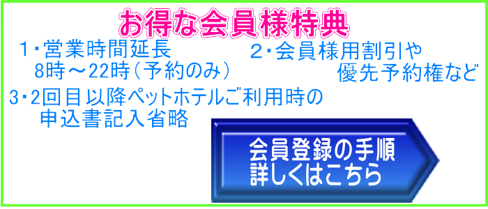 ・当店は基本予約制です。当日のペットシッター、お預かりはお断りする場合がございます。